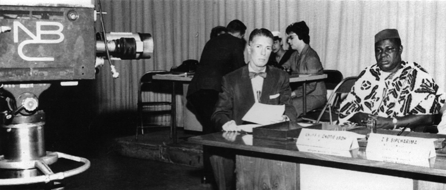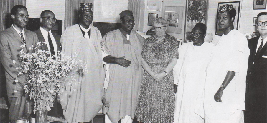 Chief Festus Samuel Okotie-eboh, with the Trade Delegation in the United States of America. To his left is Minister of Commerve and Industry, Alhaji Zanna Bukar Dipcharima