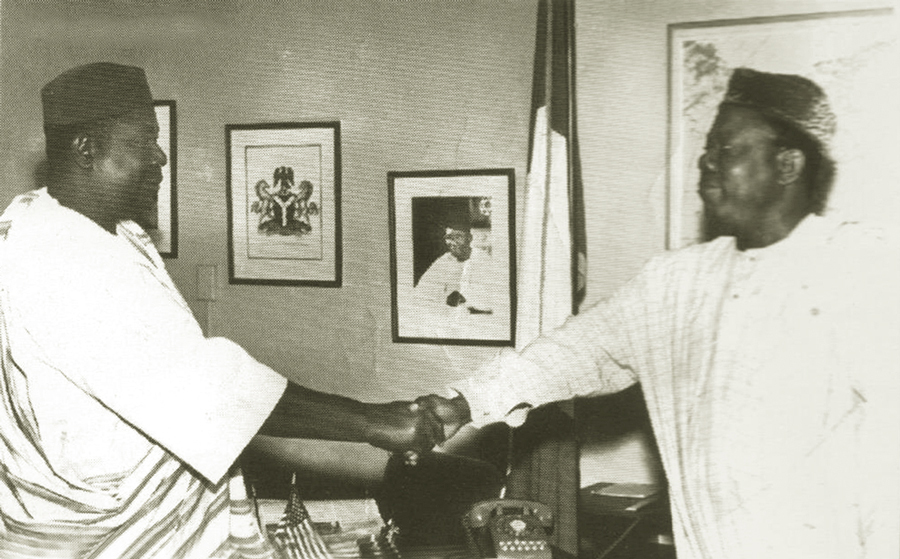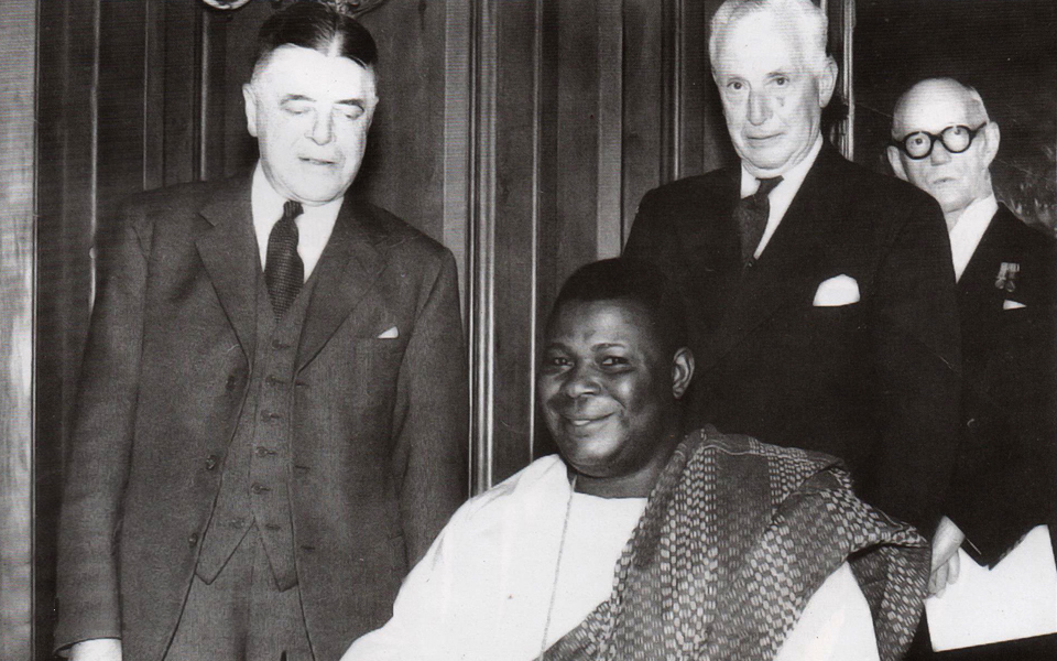 Chief Festus Samuel Okotie-Eboh, Nigeria's Finance Minister on tour with Prime Minister, Federal Republic of Nigeria, Sir Abubarka Tafawa Balewa.